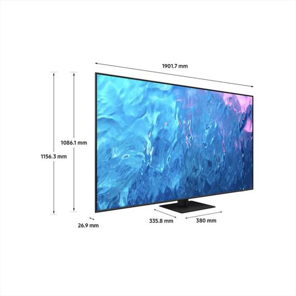- Design: Con un design elegante e moderno, la Samsung Q-LED UHD 3K 85″ si adatta perfettamente a qualsiasi ambiente domestico. I bordi sottili e il supporto raffinato conferiscono un aspetto sofisticato e contemporaneo, mentre il design slim ottimizza lo spazio.